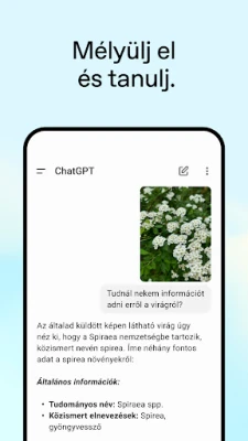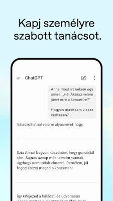 A ChatGPT nem csupán egy alkalmazás, hanem egy sokoldalú segítőtárs, amely a legkülönfélébb helyzetekben nyújt támogatást. Használja a kényelmes Hang módot egy fejhallgató ikonra koppintva, hogy útközben is beszélgessen vele, kérjen esti mesét családjának, vagy tisztázzon egy vitás kérdést a vacsoraasztalnál. Készítsen fényképet kézzel írott receptek átírásához, vagy tudjon meg többet egy történelmi emlékműről a Fotófeltöltés funkcióval. Engedje szabadjára kreativitását születésnapi ajándékötletekhez vagy személyre szabott üdvözlőkártyák megalkotásához.