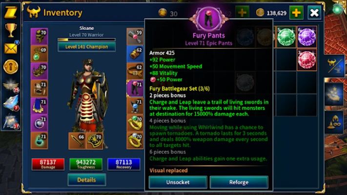 Indulj el egy epikus küldetésre, amely során sötét barlangokat és labirintusokat derítesz fel, erdőkön, falvakon és temetőkön át vezet az utad. Ostromolj démonok uralta várakat, hódítsd meg hófedte hegycsúcsokat, utazz el a Holdra, hogy idegen lényekkel mérkőzz meg kráterek és kanyonok között, majd még tovább, a Vörös Bolygó sivatagaiba, piramisaihoz és dzsungeleibe. Nyiss kincsesládákat, zsákmányolj aranyat, drágaköveket és harci felszereléseket, melyek a legritkább legendás státuszig fejleszthetők. Szabd testre hősödet ragyogó mellvértekkel, fenyegető sisakokkal, rejtélyes köpenyekkel, és használj drágaköveket a páncélba foglaláshoz, vagy alkoss egyedi gyűrűket és amulettekeket. Fedezz fel egy lebilincselő történetet, tele interplanetáris intrikákkal és humoros karakterekkel, miközben Ragadamot, az ősellenségedet üldözöd a világokon át, hogy meghiúsítsd gonosz terveit. Miután hősöd eléri a 70. szintet, a fejlődésed a korlátlan Bajnok Szintekbe torkollik, garantálva a folyamatos erősödést és a végtelen újrajátszhatóságot a Bátorság Próbái módban.