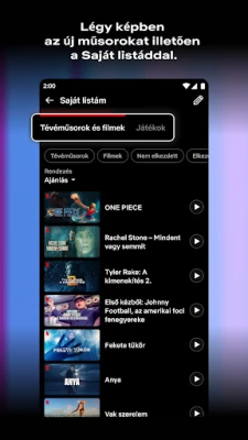 A Netflix folyamatosan frissülő és bővülő kínálata biztosítja, hogy sosem fogy ki a felfedezésre váró műsorokból. Könnyedén böngészhetsz a legújabb produkciók között, vagy rákereshetsz azokra az alkotásokra, melyeket már régóta meg szerettél volna nézni – és máris élvezheted őket streaming formájában, közvetlenül a készülékeden. Minél többet nézel, annál kifinomultabbá válik a Netflix személyre szabott ajánlórendszere, mely intelligens javaslatokkal segít megtalálni a következő felejthetetlen vizuális élményt, pont a te ízlésedre szabva.