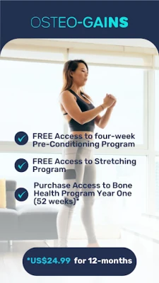 Fedezze fel az OSTEO-GAINS programot, amely egy úttörő megközelítés a csontjaid egészségének és erősségének fenntartásához. Gondosan kidolgozott módszerünk tudományos kutatásokon alapul, és arra törekszik, hogy otthonod kényelméből nyújtson hatékony megoldást a csontritkulás megelőzésére és a csontsűrűség növelésére. Az alkalmazás regisztrációját követően azonnal hozzáférhet az Ingyenes Előkészítő Programhoz és az Ingyenes Nyújtó Programhoz, amelyek alapozzák meg a jövőbeni sikereidet. Ez a kezdeti szakasz elengedhetetlen ahhoz, hogy tested felkészüljön a célzottabb gyakorlatokra, miközben izmaid rugalmasak maradnak.