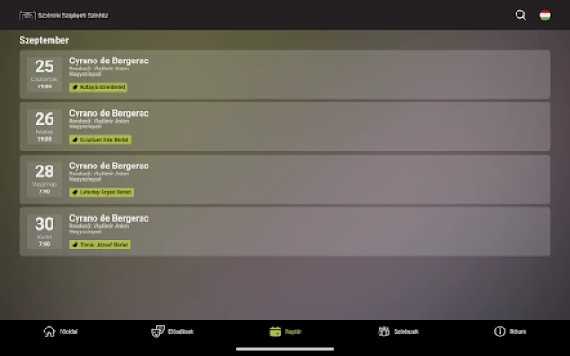 Ismerje meg a színpad sztárjait! Böngésszen a szereplők részletes profiljai között, nézze meg fotóikat és tudja meg, melyik darabban milyen szerepben láthatja őket. Kukkantson be a kulisszák mögé a válogatott fotógalérián keresztül, amely exkluzív jelenetfotókat és előadásképeket kínál. Emellett gyorsan és egyszerűen hozzáférhet kiemelt tartalmakhoz és izgalmas podcastokhoz, amelyek tovább gazdagítják színházi élményét. Az intelligens keresőfunkcióval könnyedén megtalálhat minden előadást, művészt vagy bármely más releváns információt, így minden szükséges adat egy érintésre van. Tekintse meg a bérletlehetőségeket és árakat, hogy a legkedvezőbb módon élvezhesse a művészetet.