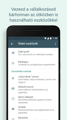 Optimalizálja munkafolyamatait és spóroljon értékes időt a beépített automatizált funkciókkal. Küldjön gyors válaszokat gyakori kérdésekre, vagy állítson be távolléti üzeneteket, hogy soha ne maradjon le egyetlen megkeresésről sem. A címkék használatával könnyedén rendszerezheti és szűrheti beszélgetéseit, biztosítva, hogy a legfontosabb interakciók mindig kéznél legyenek. Az Állapot frissítések révén azonnal megoszthatja legújabb ajánlatait, híreit, sőt, akár rendeléseket és fizetéseket is kezelhet közvetlenül az alkalmazáson belül**, ezzel páratlan ügyfélélményt biztosítva.